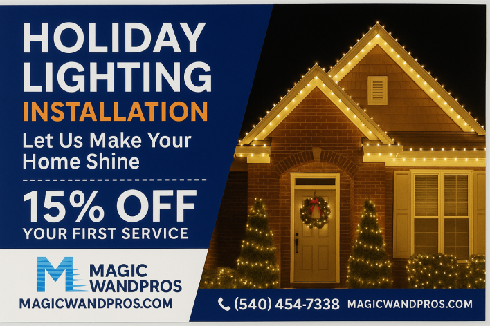 Bring the joy and sparkle of the holidays to your home with professional holiday lighting installation from Magic Wand Pros, proudly serving Round Hill, Leesburg, Purcellville, and surrounding Northern Virginia communities. From elegant roofline lights to full landscape displays, our expert team designs, installs, maintains, and removes your lights — so you can relax and enjoy the season.